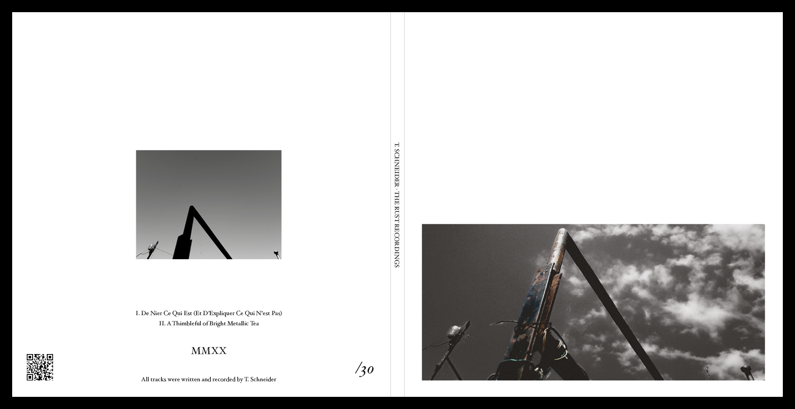 Concept and sketches of a digipack for the EP "The Rust Recordings" by T. Schneider, a musical composer based in Porto.